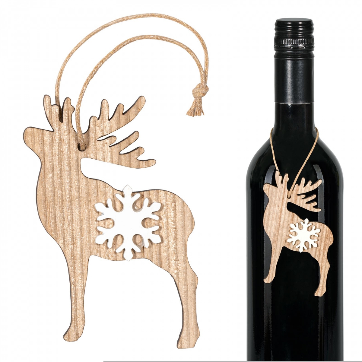 Anhänger Rentier mit Schneeflockeca. 6,5 cmNatur/Weiß | Geschenkverpackungen | Accessoires & Dekoartikel | Dekoartikel und Anhänger