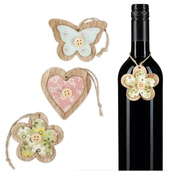 Anhänger Romantik Schmetterling/Herz/Blüteaus Holz/Stoffca. 6 x 7 cm |
