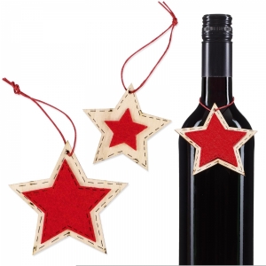 Anhänger „Stern mit Stichrand“ Natur/Rot sortiert, Holz/Filz.