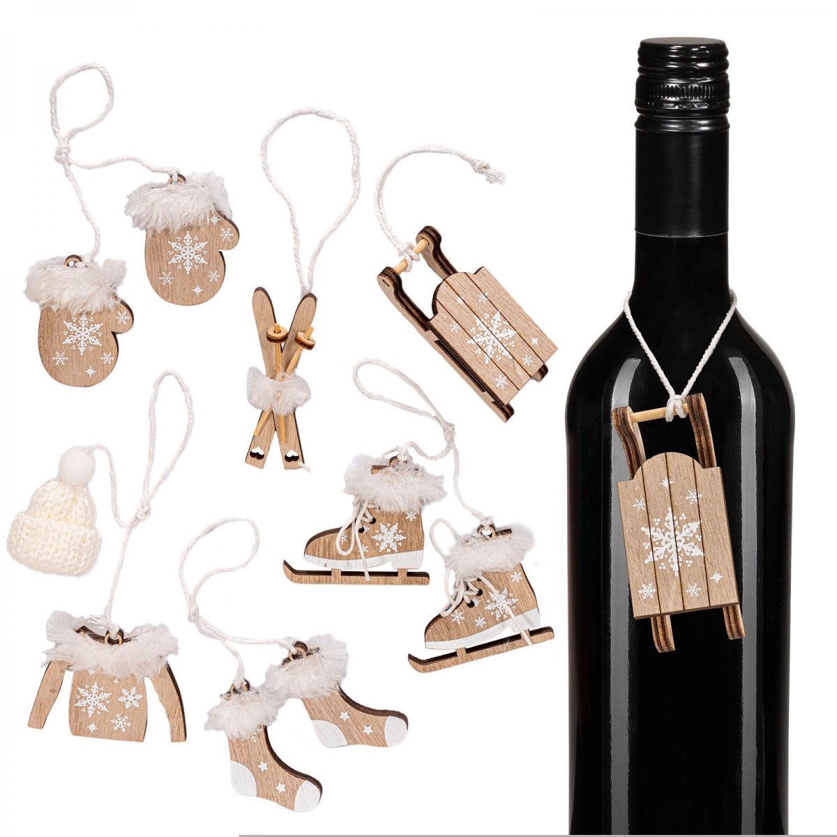 In der Holzbox finden sich sechs verschiedene winterliche Geschenkanhänger.