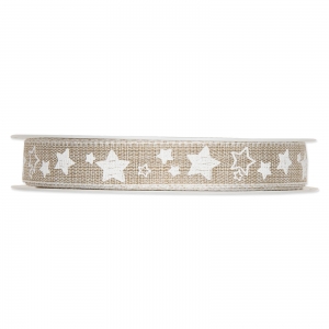 Band Sternchenmit LeinenkanteNatur/Weiß15 mm x 15 m | Geschenkverpackungen | Accessoires & Dekoartikel | Geschenkbänder und Geschenkschleifen