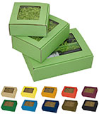 Geschenkkartons aus offener Welle mit Sichtfenster.