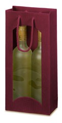 Tragetasche aus offener Welle mit Transparentfenster, passend für Wein/Sekt. Die Innenseite ist in der gleichen Farbe wie die Außenseite eingefärbt.