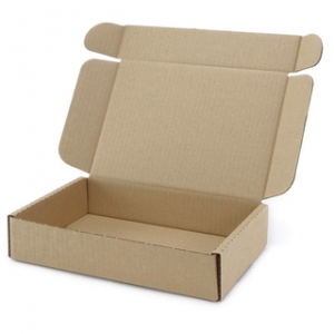 Eine stabile Faltschachtel aus brauner Wellpappe.