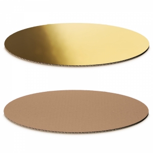 Aus Wellpappe mit einer goldenen Metallicoberfläche (foliert).
