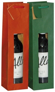 Flaschentasche mit Sichtfenster1er, rot100 x 385 x 90 mm | Geschenkverpackungen | Tragetaschen