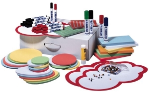 Inhalt (Moderations-Karten): 500 Rechtecke 9,5 x 20,5 cm*, 100 Ovale 11 x 19 cm*, 100 Kreise Ø 9,5 cm*, 100 Kreise Ø 14 cm*, 50 Kreise Ø 19,5 cm*, 10 Moderationswolken 25 x 42 cm, je 240 Markierungspunkte in rot & grün