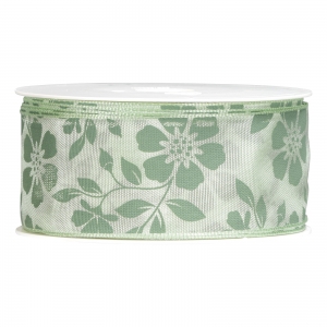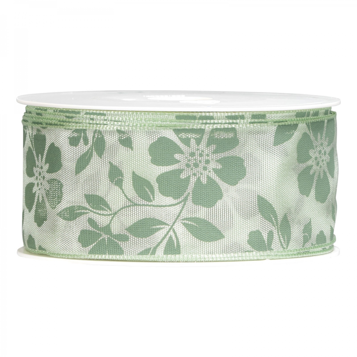 Geschenkband Blütenmustergrün40 mm x 18 m | Geschenkverpackungen | Accessoires & Dekoartikel | Geschenkbänder und Geschenkschleifen