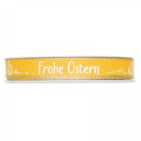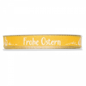 Bedrucktes Geschenkband „Frohe Ostern“ Gelb/Weiß, 15 mm x 20 m