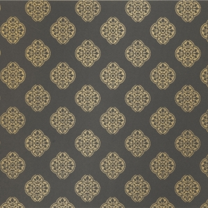 Bedrucktes Geschenkpapier auf Secare-Rolle, Farbe Schwarz mit goldenen Ornamenten.