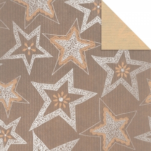 Geripptes Kraftpapier, bedruckt mit Sternen in den Farben Sand, Weiß und Beige.