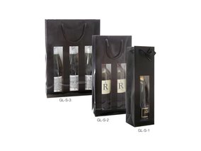 Glanz Flaschentasche 1ermit Fenster, schwarz100 x 380 x 90 mm | Geschenkverpackungen | Tragetaschen