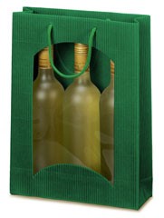 Tragetasche aus offener Welle mit Transparentfenster, passend für Wein/Sekt. Die Innenseite ist in der gleichen Farbe wie die Außenseite eingefärbt.