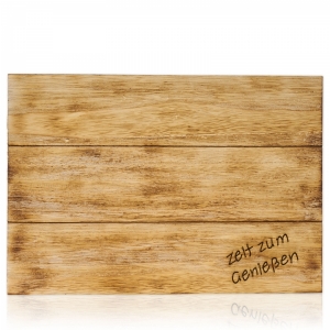 Die Holz-Dekoplatte ist sehr dekorativ und kann mit verschiedenen Produkten bestückt werden. Das Holz hat eine geschliffene Oberfläche und ist auf der Oberseite geflammt und mit einer Fräsung versehen.