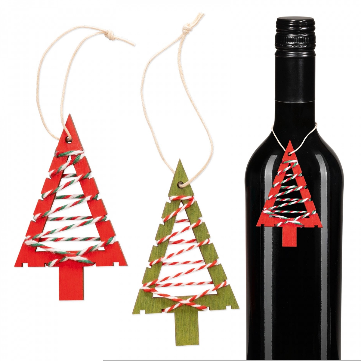 Holzanhänger KordelbaumRot/Grünca. 8 x 4,8 cmsortiert | Geschenkverpackungen | Accessoires & Dekoartikel | Dekoartikel und Anhänger