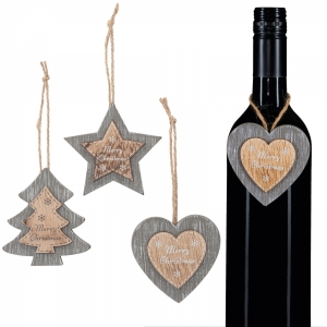 Sehr natürlicher Holzanhänger Stern, Baum, Herz - Grau/Natur, sortiert.