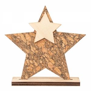 Für alle, die den natürlichen Look lieben sind diese Aufsteller aus Holz mit Korkoptik und glänzenden Elementen der perfekte Weihnachtsschmuck. Der Stern wird einfach in die Halterung aus Holz gestellt.