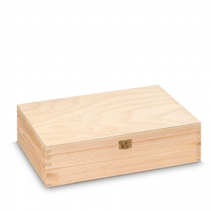 2er Holzkiste aus Vollholz mit Klappdeckel, Trennsteg (herausnehmbar), Metallscharnieren und Metallverschluß. Passend für Wein/Sekt.