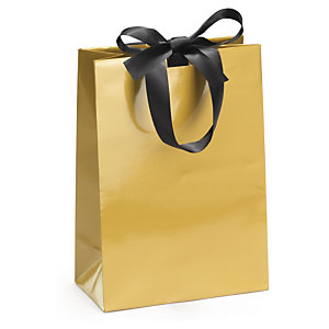 + für festliche Augenblicke + Pappverstärkung am oberen Rand + Tragegriff und Verschlussknoten aus Satin + mit Seitenfalten und Kartonboden + Material: glänzendes Lackpapier + Qualität: 170 g/m²
