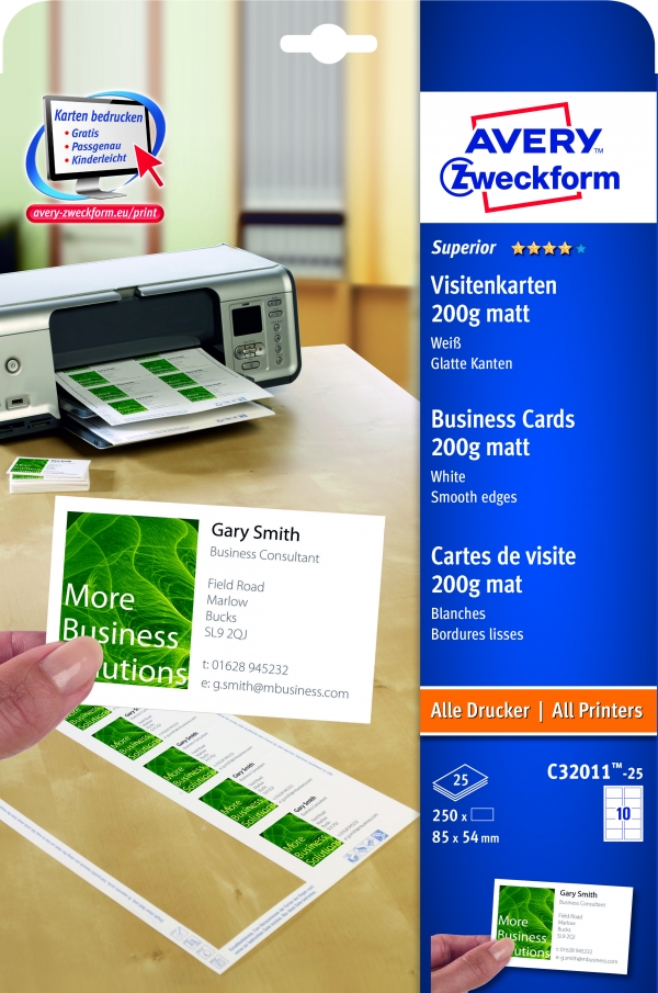 Visitenkarten pro Bogen 10 Visitenkarten