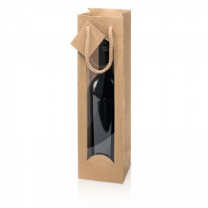 Tragetasche aus Kraftpapier mit Klarsichtfenster und Anhänger.