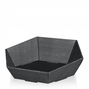 Dieser sechseckige Präsentkorb hat eine Oberfläche mit Strukturprägung. Der Boden ist in der gleichen Farbe wie die Außenseiten.