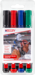 4 Permanentmarker farbsortiertSCHWARZ, BLAU, ROT, GRÜNedding 3001,5 - 3,0 mm | Bürobedarf | Schreibgeräte | Marker