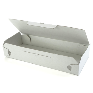 Weißer Pizzakarton mit dem Innenmaß 400 x 160 x 65 mm (Länge x Breite x Höhe)