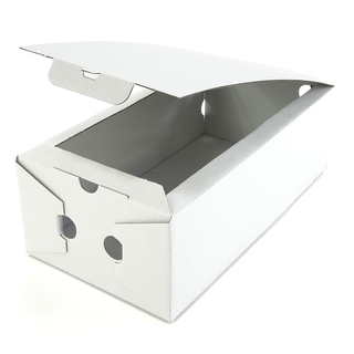 Weißer Pizzakarton mit dem Innenmaß 300 x 160 x 100 mm (Länge x Breite x Höhe)