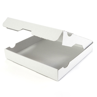Weißer Pizzakarton mit dem Innenmaß 260 x 260 x 40 mm (Länge x Breite x Höhe)
