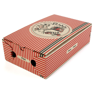 Brauner Pizzakarton mit dem Innenmaß 270 x 160 x 70 mm (Länge x Breite x Höhe)