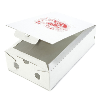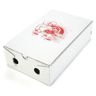 Weißer Pizzakarton mit dem Innenmaß 270 x 160 x 70 mm (Länge x Breite x Höhe)
