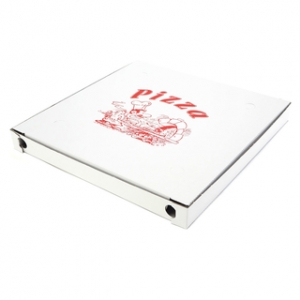 Weißer Pizzakarton mit dem Innenmaß 460 x 460 x 50 mm (Länge x Breite x Höhe)