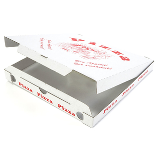 Weißer Pizzakarton mit dem Innenmaß 200 x 200 x 30 mm (Länge x Breite x Höhe)