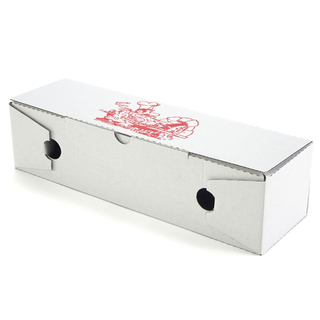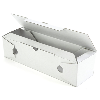 Weißer Pizzakarton mit dem Innenmaß 280 x 80 x 70 mm (Länge x Breite x Höhe)