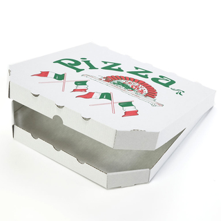 Weißer Pizzakarton mit dem Innenmaß 240 x 240 x 30 mm (Länge x Breite x Höhe)