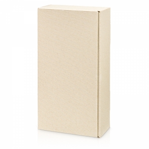 Präsentkarton aus offener Welle (Graspapier) inkl. Einlage für zwei Flaschen Wein oder Sekt bis 360 mm Länge.