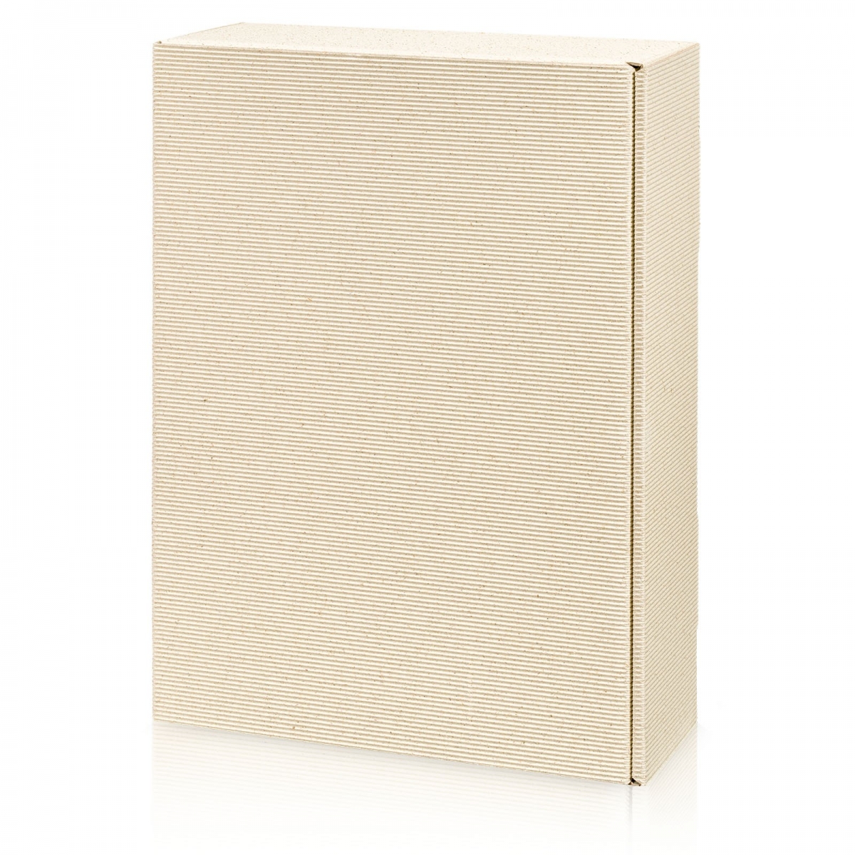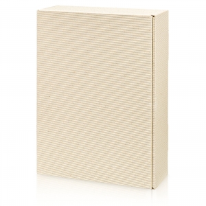 Präsentkarton aus offener Welle (Graspapier) inkl. Einlage für drei Flaschen Wein oder Sekt bis 360 mm Länge.