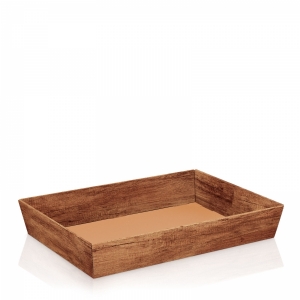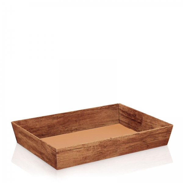 Die naturgetreue Holzoptik dieses Präsentkorbs aus Wellpappe ist die ideale Basis für viele Geschenkideen. Der Offsetdruck mit Mattlackierung sorgt für eine ansprechende Haptik.
