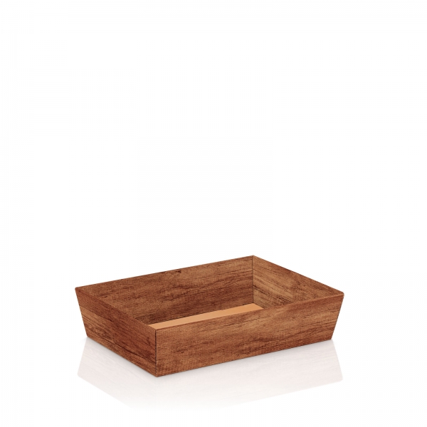 Die naturgetreue Holzoptik dieses Präsentkorbs aus Wellpappe ist die ideale Basis für viele Geschenkideen. Der Offsetdruck mit Mattlackierung sorgt für eine ansprechende Haptik.