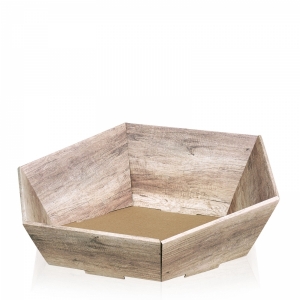 Die naturgetreue Holzoptik dieses Präsentkorbs aus Wellpappe ist die ideale Basis für viele Geschenkideen. Der Offsetdruck mit Mattlackierung sorgt für eine ansprechende Haptik.