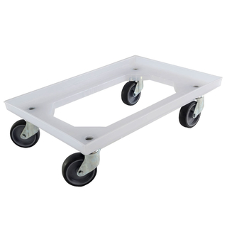 Transparenter Rollwagen ohne Bremse für Euronorm Behälter 600 x 400 mm (Länge x Breite).