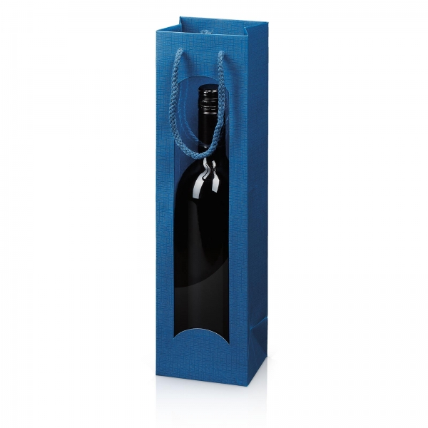 TTSatina Dunkelblau mit Fenster1er Wein/Sekt100 x 85 x 360 mm | Geschenkverpackungen | Tragetaschen | Matt