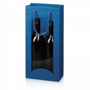 TTSatina Dunkelblau mit Fenster2er Wein/Sekt170 x 85 x 360 mm | Geschenkverpackungen | Tragetaschen | Matt