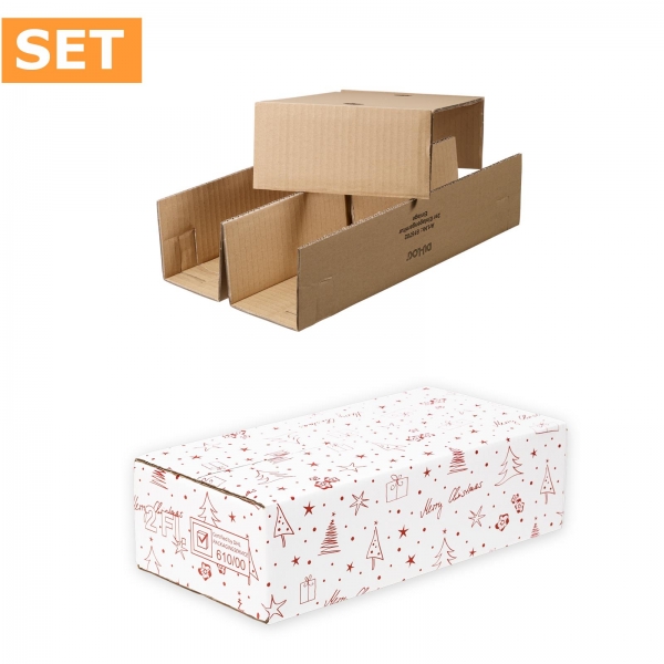Versandkarton-SET mit Motivdruck für zwei Flaschen Wein oder Sekt bis 380 mm Länge komplett inkl. Einlage + Deckel.