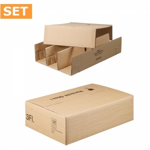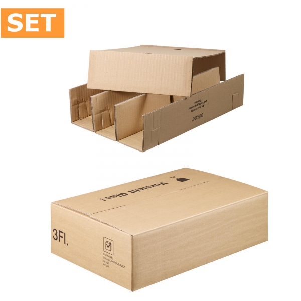 Versandkarton-SET für drei Flaschen Wein oder Sekt bis 380 mm Länge komplett inkl. Einlage + Deckel.