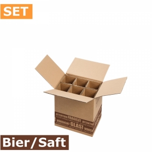 Versandkarton für sechs Flaschen Bier/Saft bis 280 mm Länge inklusive zwei 3er S-LOG-280-Hülsen.