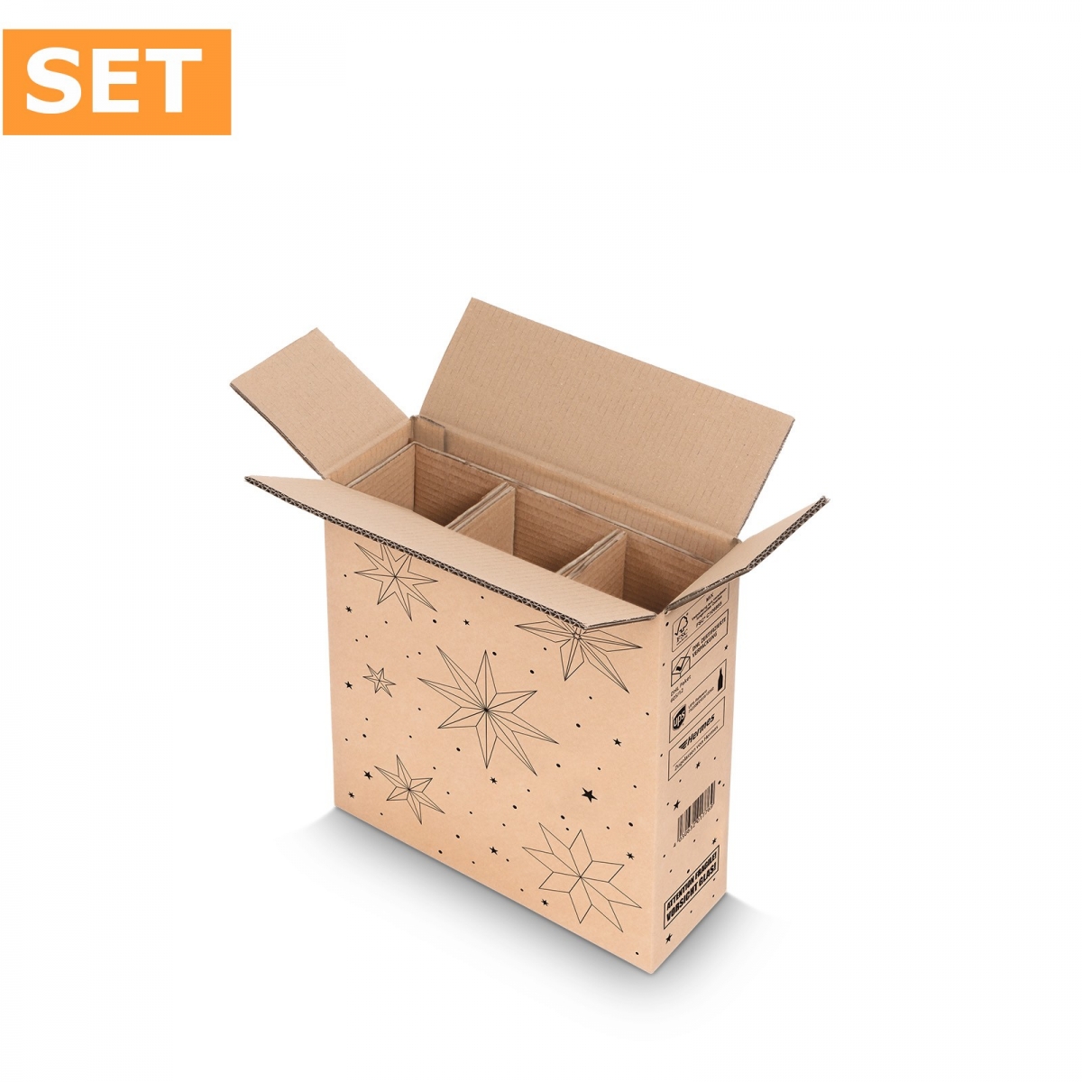 Set Versandkarton3er Wein/Sekt stehendinkl. Einlage310 x 105 x 370 mm | Geschenkverpackungen | PTZ Versandkartons