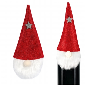 Die Wichtelmützen mit Bart können eine Flasche schmücken und machen daraus ein schönes, weihnachtliches Geschenk.
